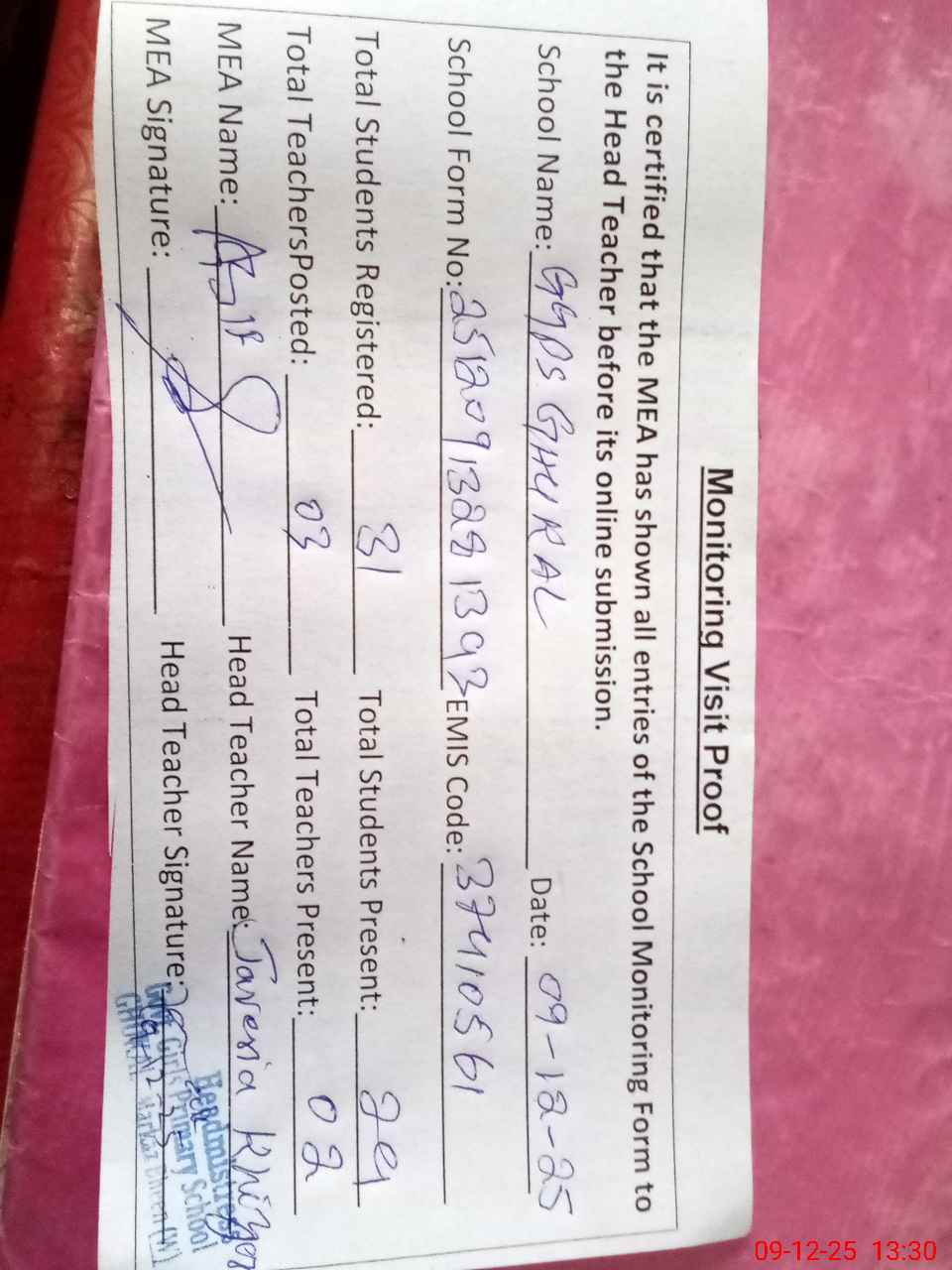 | EMIS Code: 37410561 | Name of School: GGPS GHUKAL | |||