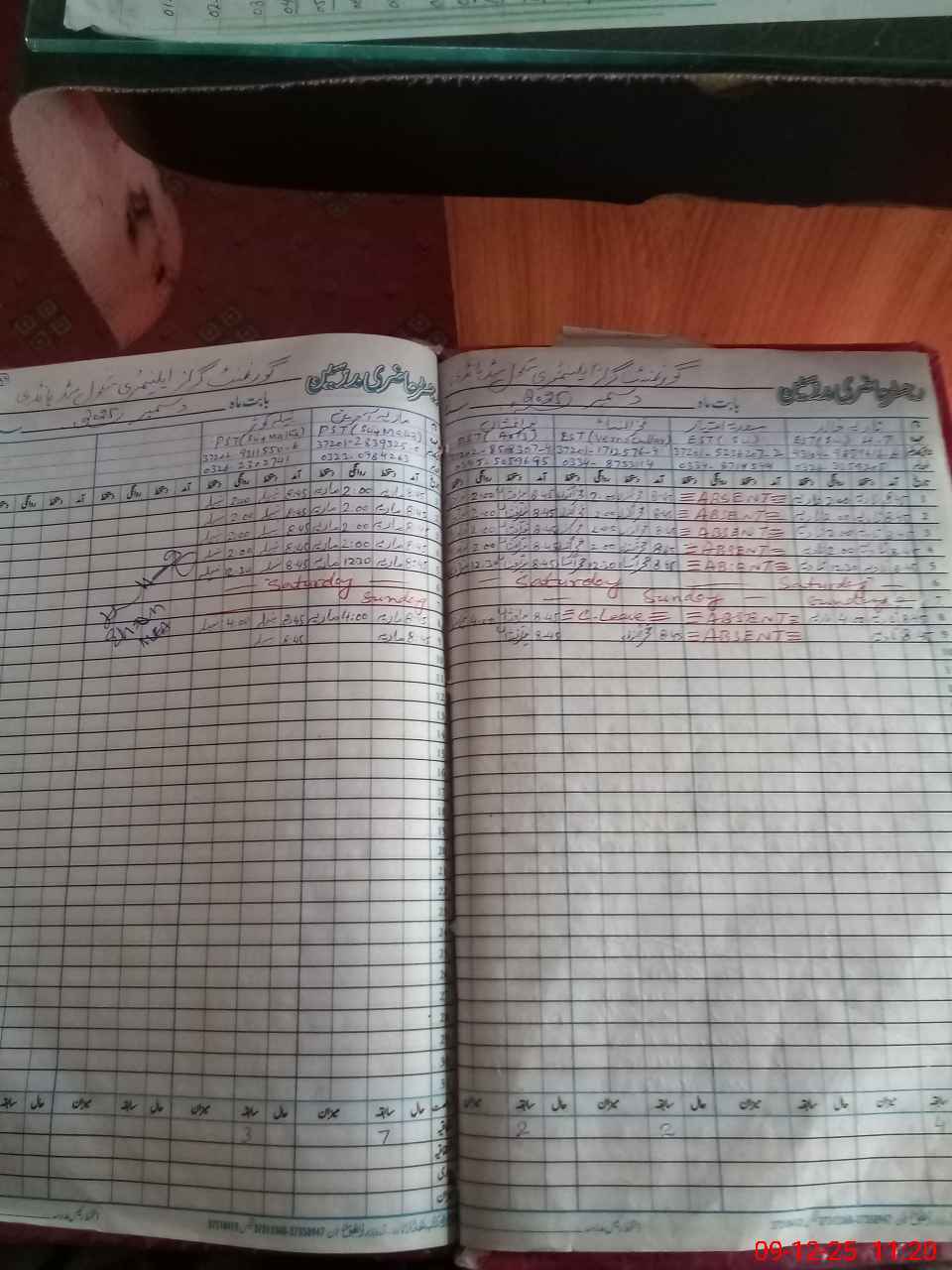 | CNIC | Full Name | Designation | R/C | Absence During Last Calender Month |