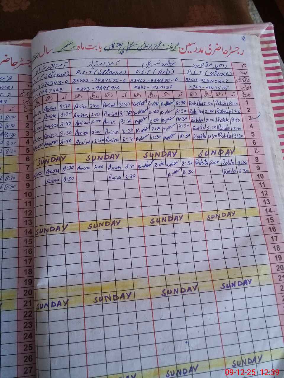 | Name: RA**** MA**** Designation: (School Headmaster's/Headmistress's) PST Phone/Cell Number: 03**** |