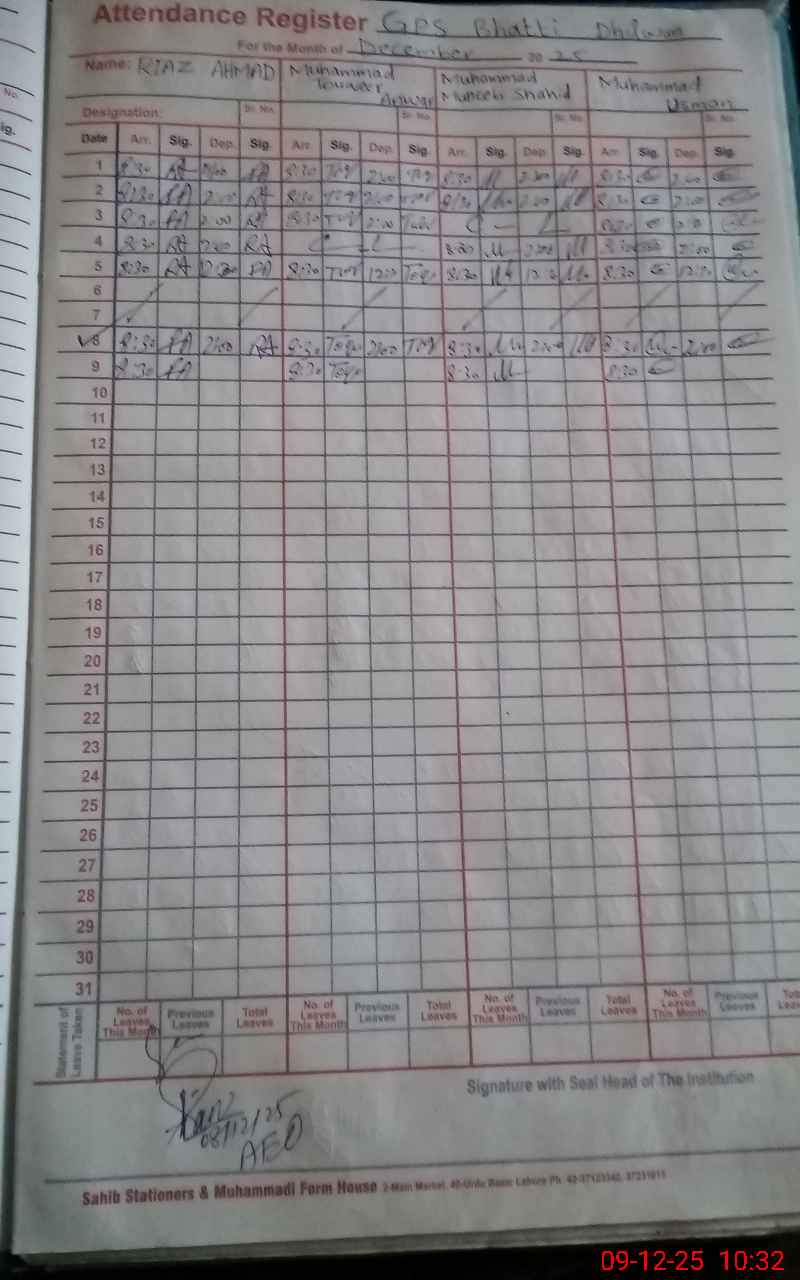 | Name: RI**** AH**** Designation: (School Headmaster's/Headmistress's) PTC/JV Phone/Cell Number: 03**** |