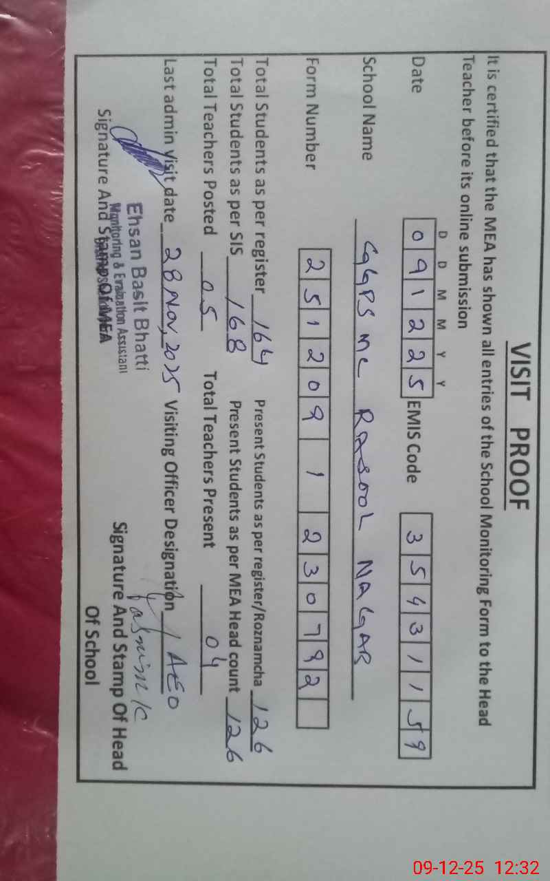 | EMIS Code: 35431159 | Name of School: GGPS MC RASOOL NAGAR | |||