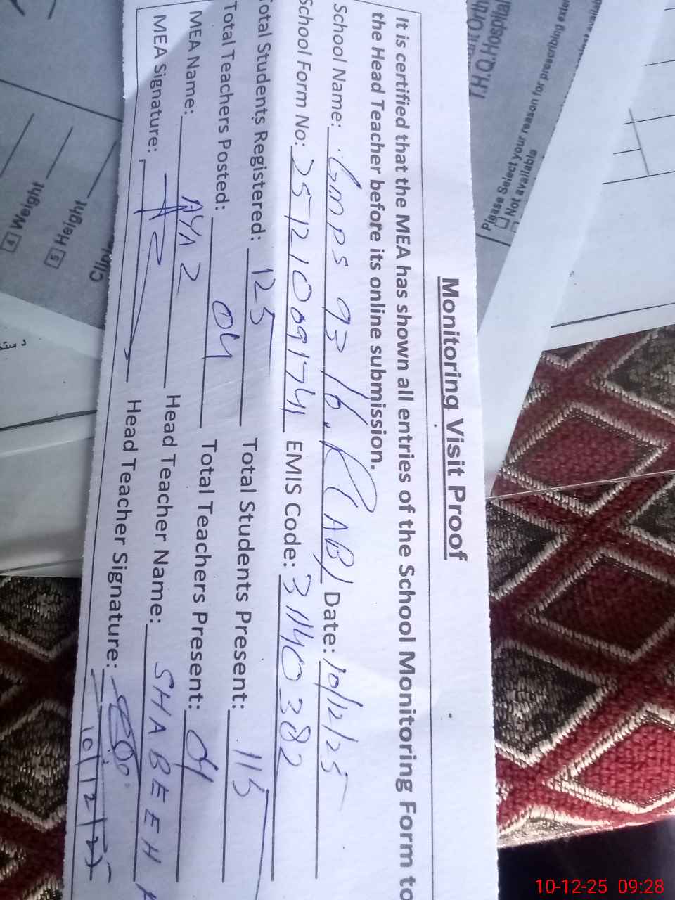 | EMIS Code: 31140382 | Name of School: GGPS 93/6-R AZAFI BASTI | |||