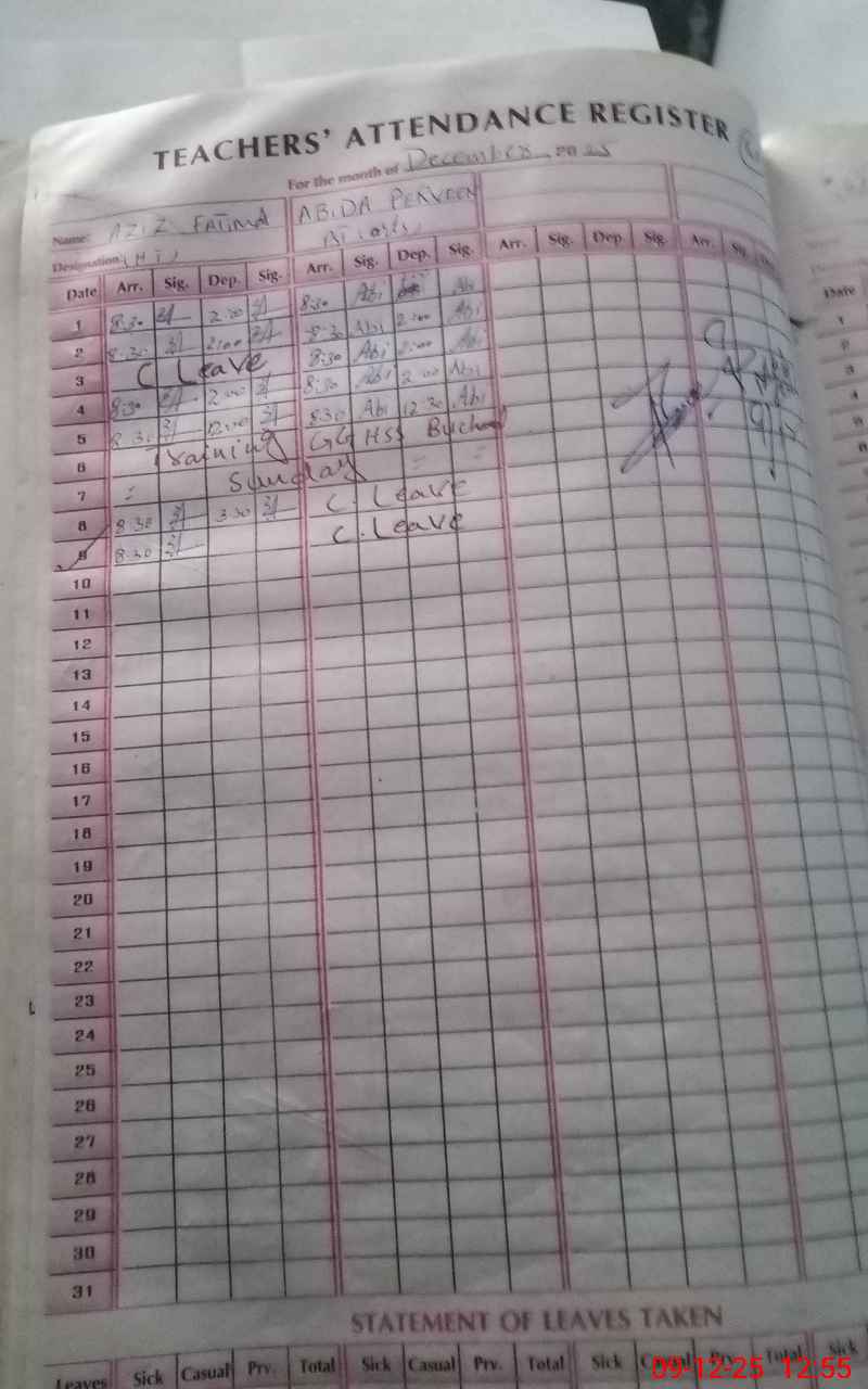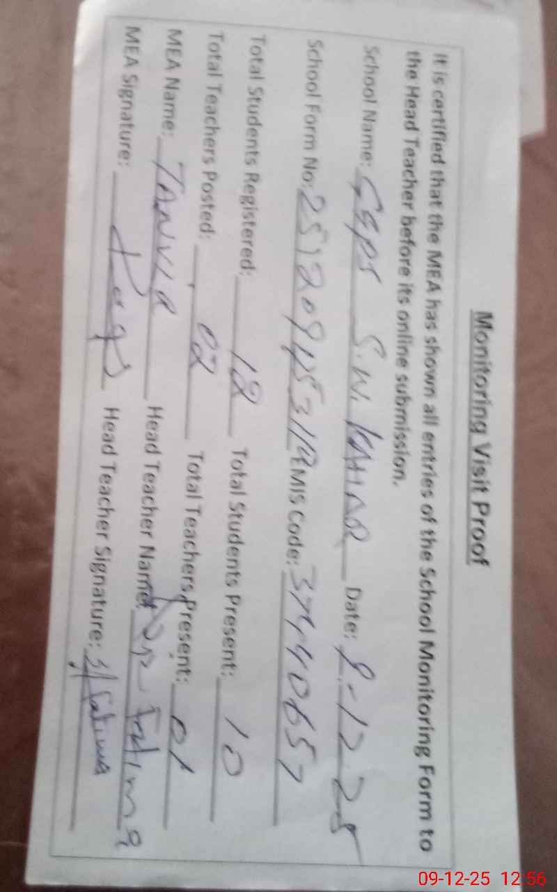 | Attendance Register | Head Teacher | MEA with School | Visit Proof |