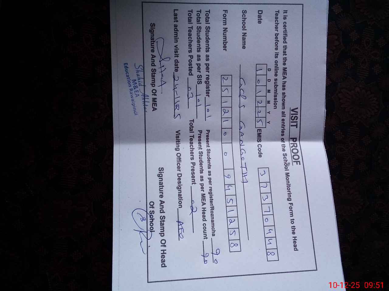 | EMIS Code: 37370448 | Name of School: GGPS GANGOHOTI MUSLIMAN | |||