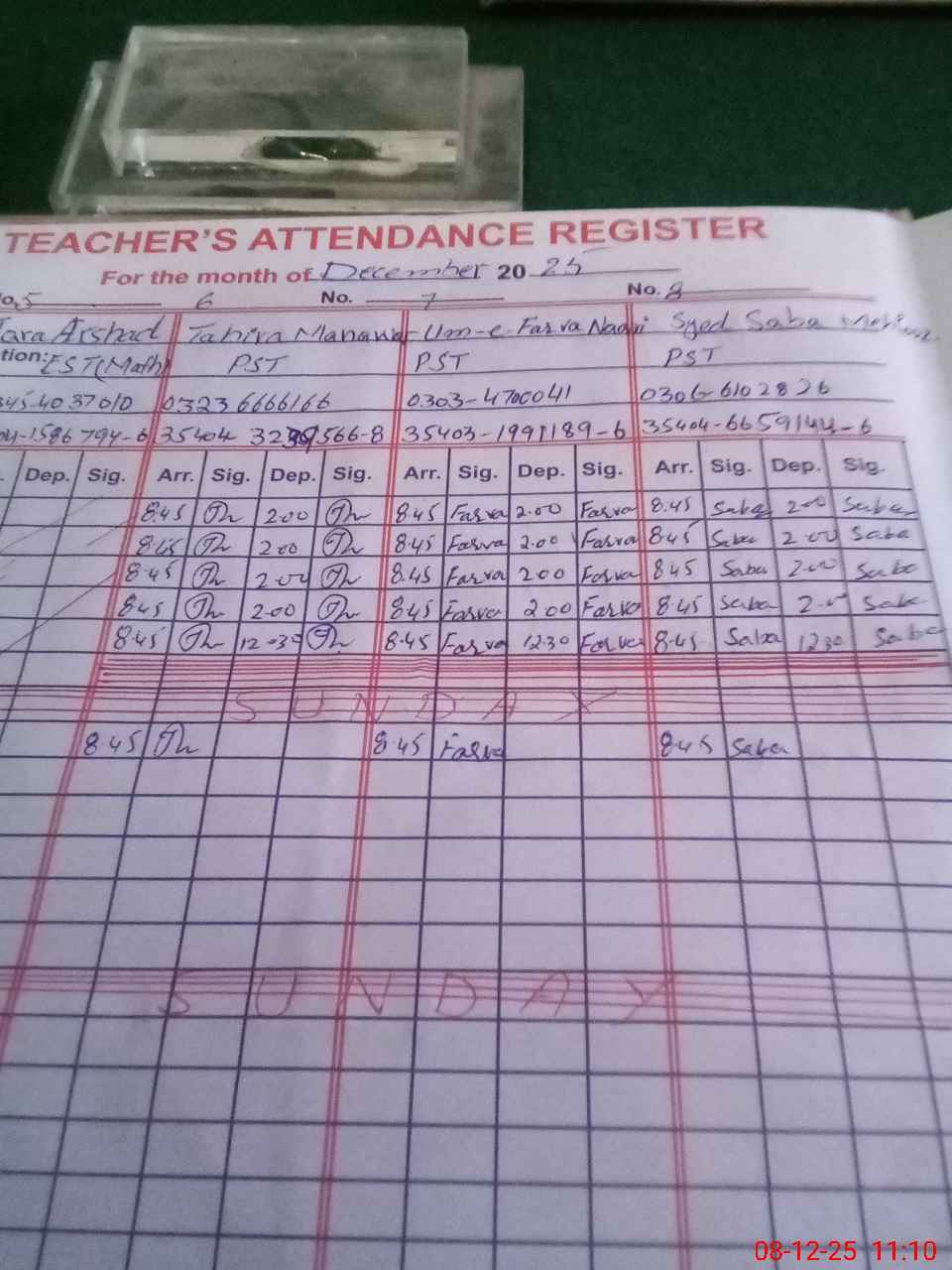 | Name: AR**** PE**** Designation: (School Headmaster's/Headmistress's) S.S.T.(art) Phone/Cell Number: 03**** |