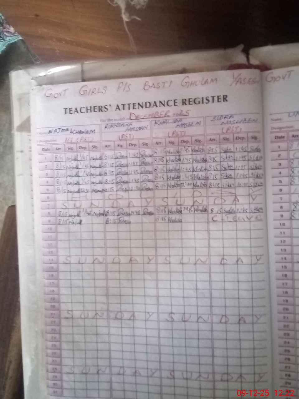| CNIC | Full Name | Designation | R/C | Absence During Last Calender Month |