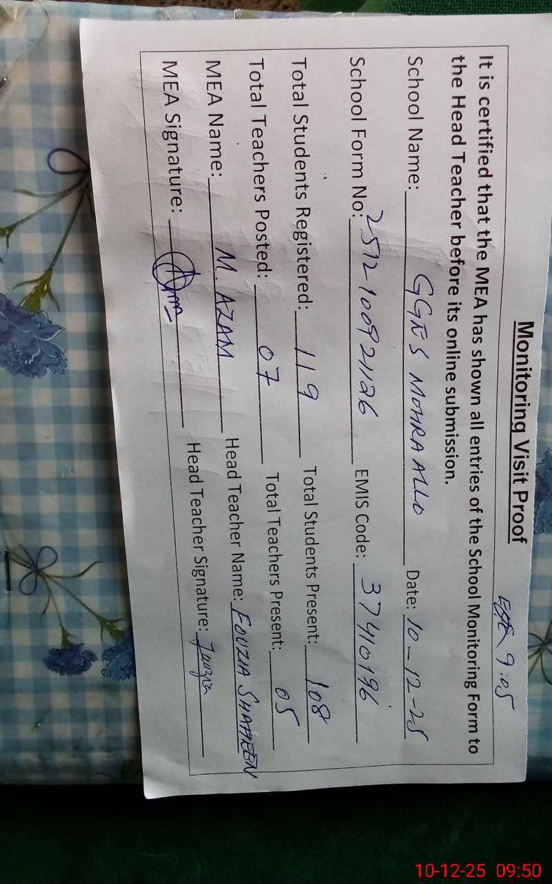 | EMIS Code: 37410196 | Name of School: GGES MOHRA ALLO | |||