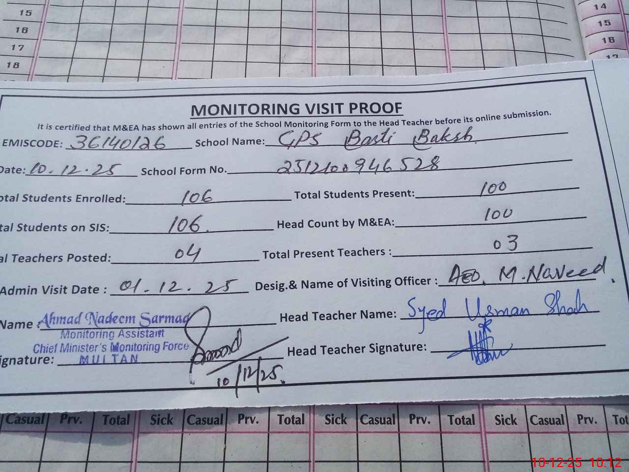 | EMIS Code: 36140126 | Name of School: GPS BASTI BUKHSH P/O GHAZI PUR | |||