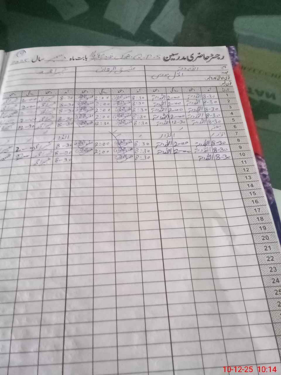 | CNIC | Full Name | Designation | R/C | Absence During Last Calender Month |