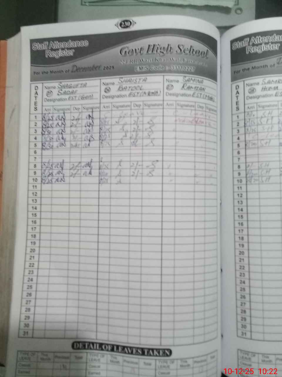 | CNIC | Full Name | Designation | R/C | Absence During Last Calender Month |