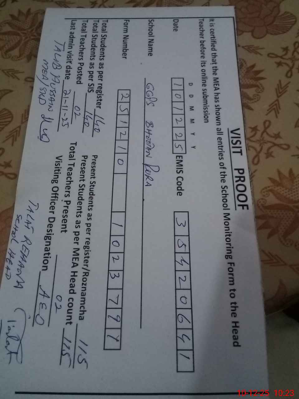 | EMIS Code: 35420641 | Name of School: GGPS BHOOTAN PURA | |||