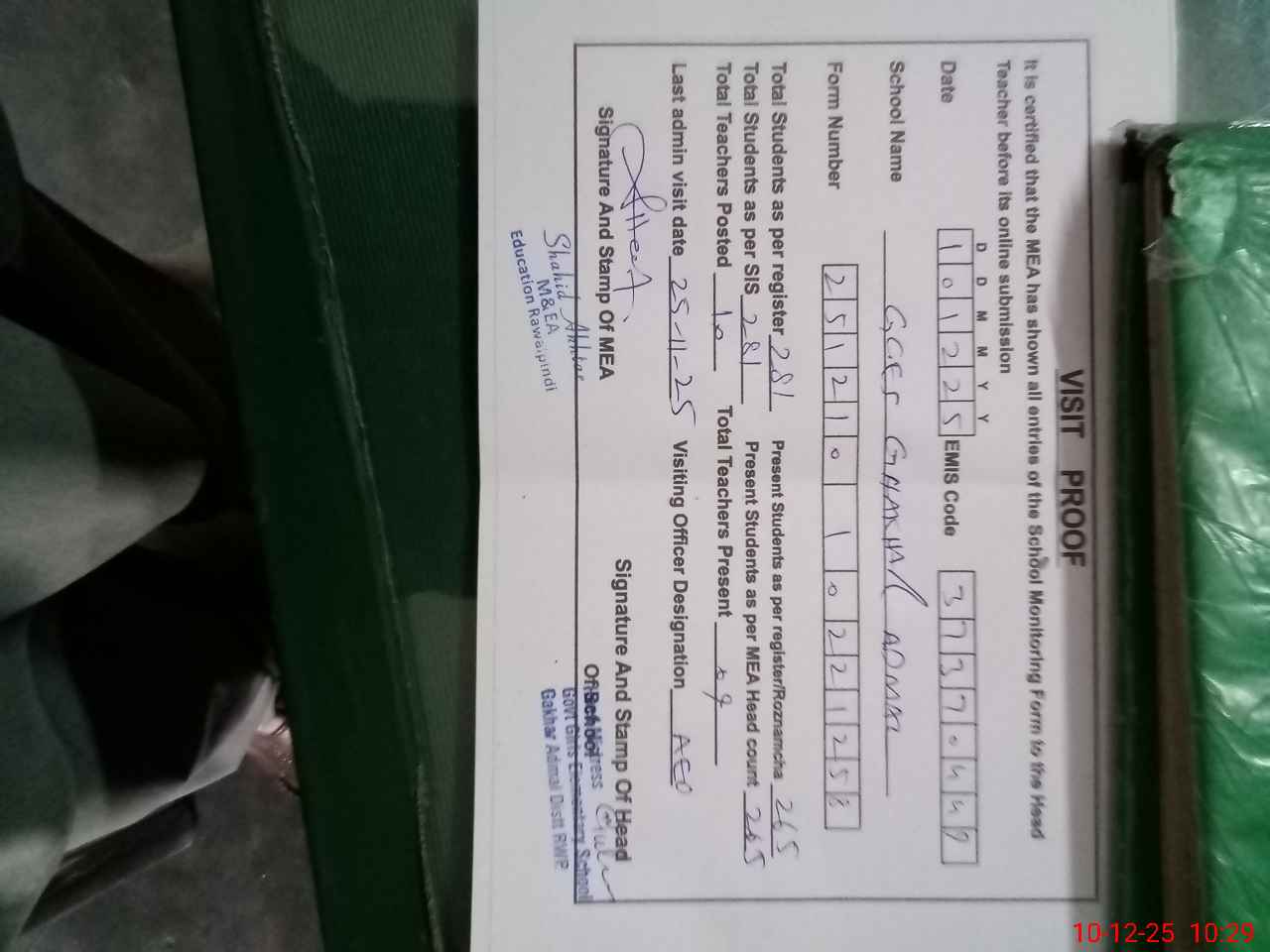 | Certified that this School was Inspected by the Undersigned MEA/DMO Today and the Information Stated Above is as Per Record. | |||||