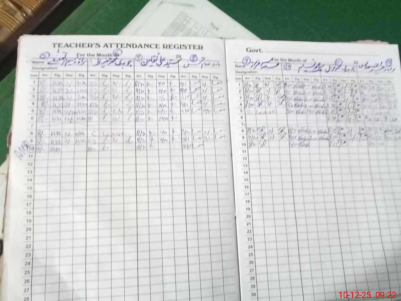 | CNIC | Full Name | Designation | R/C | Absence During Last Calender Month |