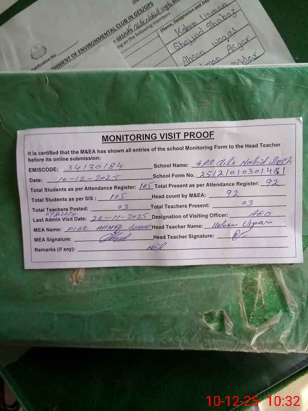 | EMIS Code: 34130184 | Name of School: GPS QILA NOHID SINGH | |||