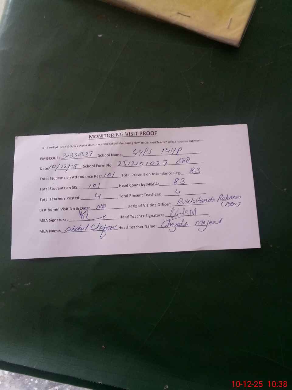 | EMIS Code: 31330537 | Name of School: GGPS 141/P | |||