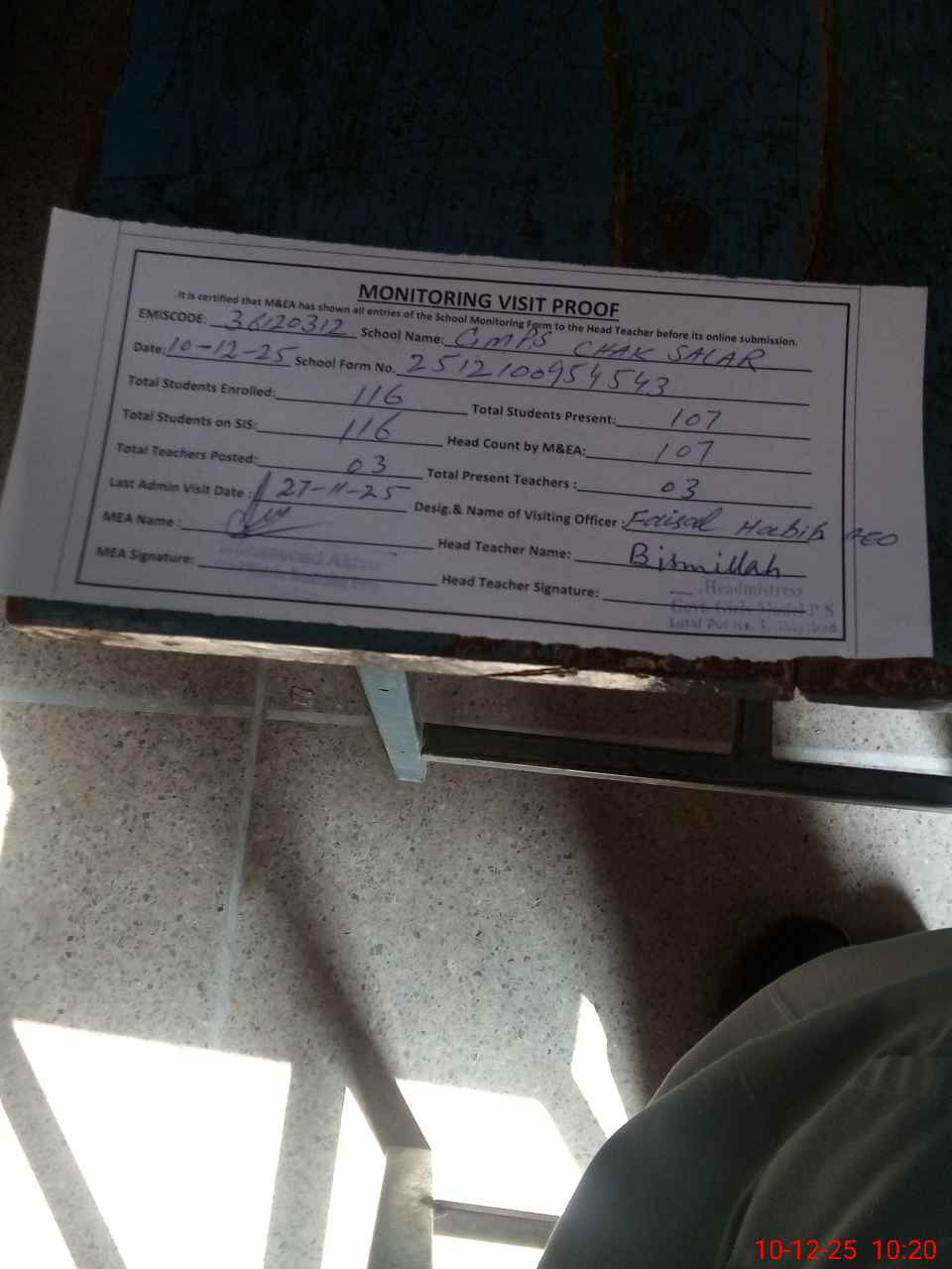 | EMIS Code: 36120312 | Name of School: GMPS CHAK SALAR | |||
