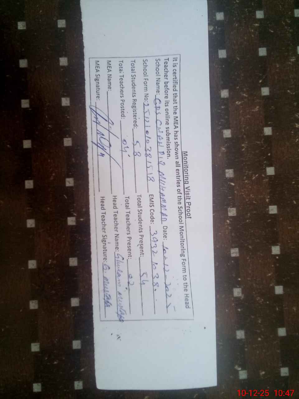 | EMIS Code: 39321038 | Name of School: GPS CHAH PIR MUHAMMAD | |||