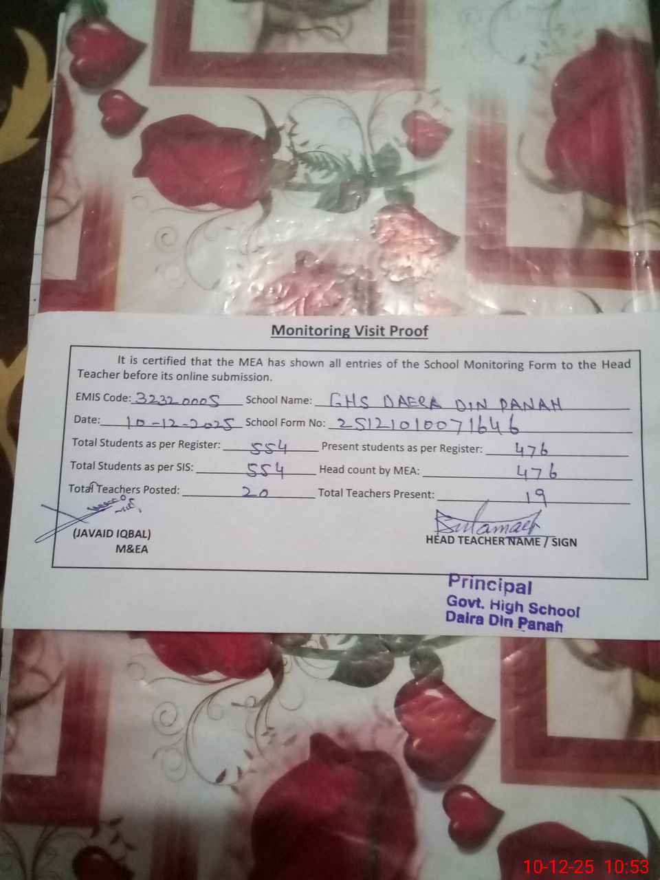 | EMIS Code: 32320005 | Name of School: GHS D.D.PANAH | |||