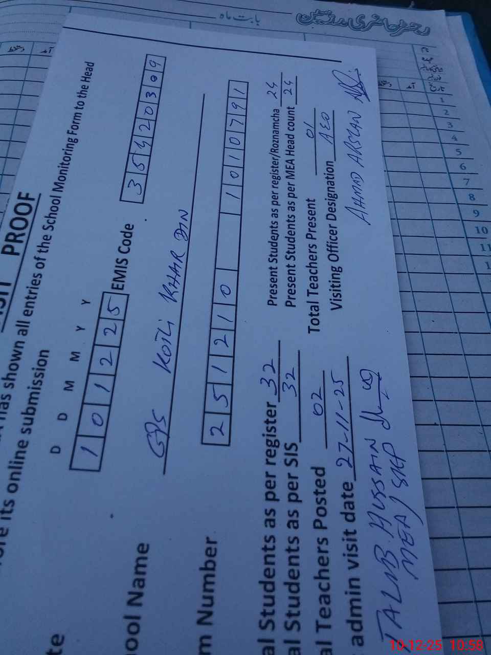 | EMIS Code: 35420309 | Name of School: GPS KOTLI KHAIR DIN | |||