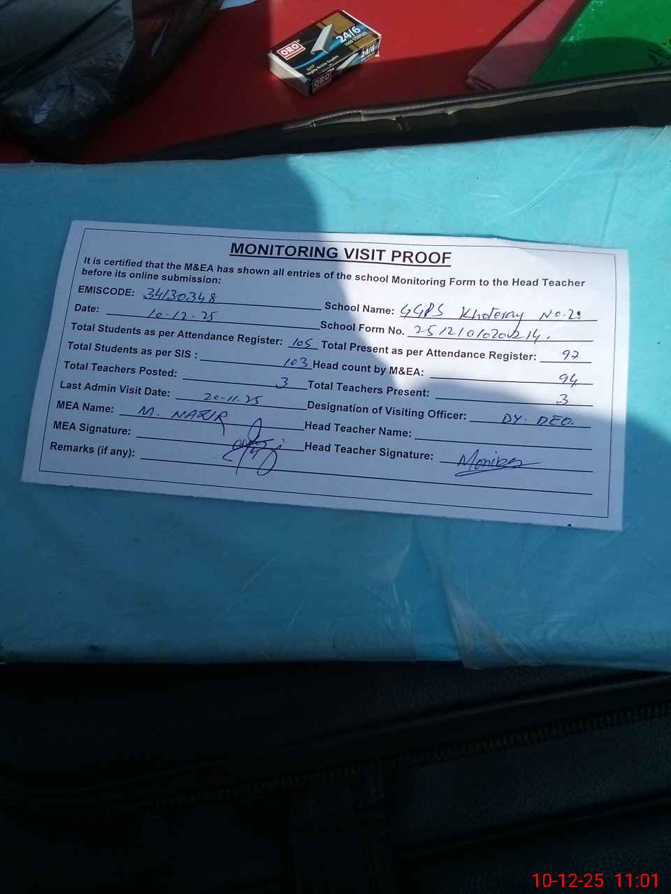 | EMIS Code: 34130348 | Name of School: GGPS KOTHRAY NO.2 | |||
