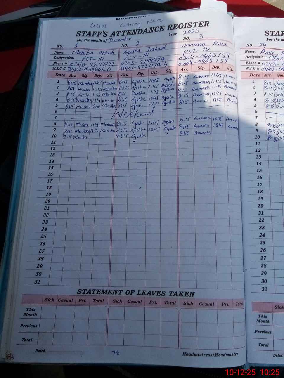 | Monitoring Date: 10-12-2025 | Start Time: 10-12-2025 10:20 AM | End Time: 10-12-2025 11:01 AM | Name of MEA: K-**** Na**** Fe**** | |