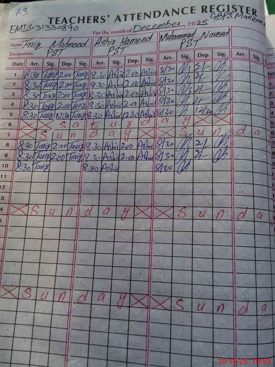 | Remarks (Use Separate Page if Required): Mr Waseem Raja PST teacher Expired on 15 August 2025 | |||||