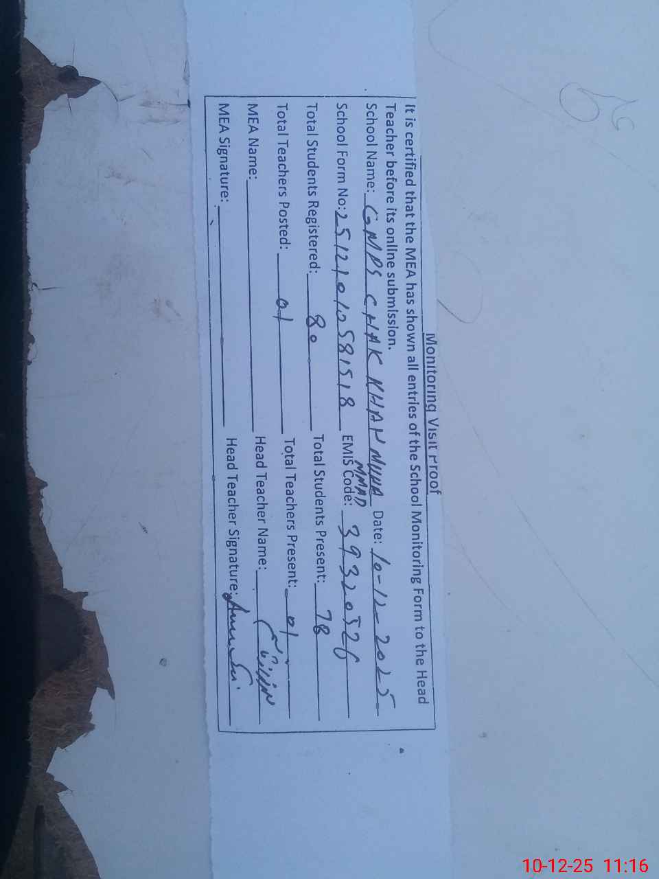 | EMIS Code: 39320526 | Name of School: GMPS CHAK KHAN MUHAMMAD | |||