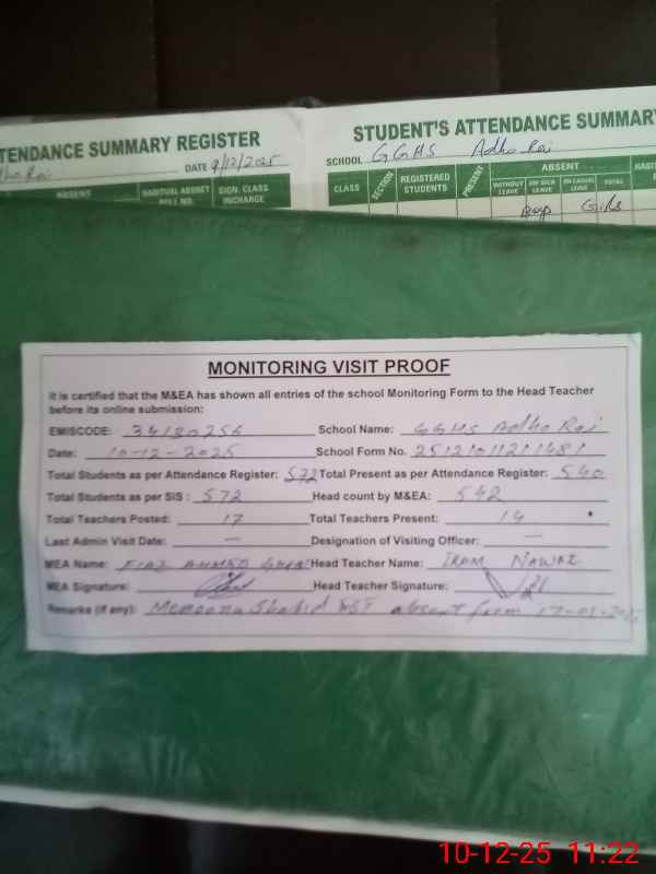 | EMIS Code: 34130256 | Name of School: GGHS ADHO RAI | |||