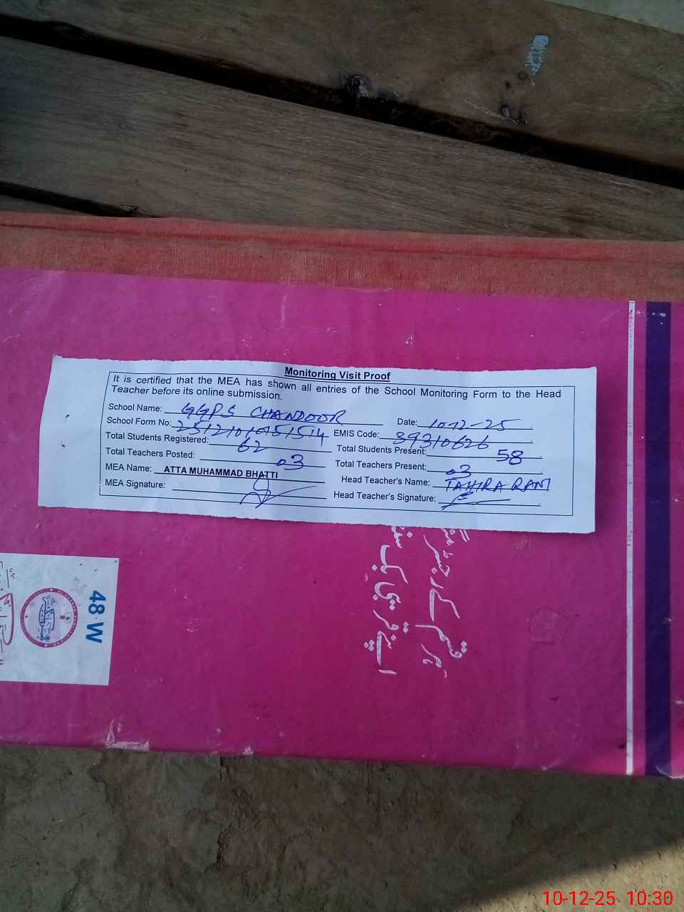 | EMIS Code: 39310626 | Name of School: GGPS CHANDOOR VIA BASEER PUR | |||