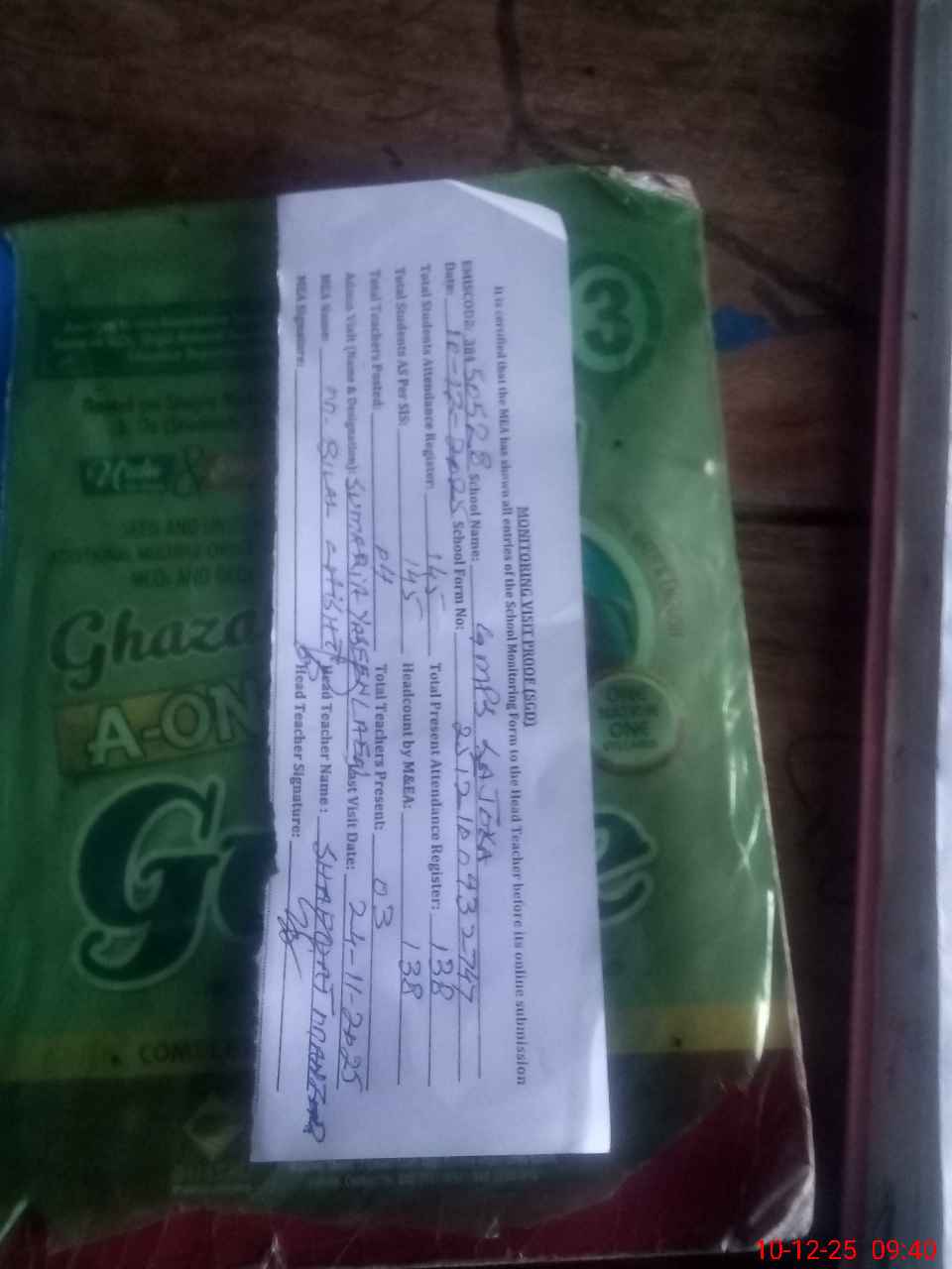 | Attendance Register | Head Teacher | MEA with School | Visit Proof |