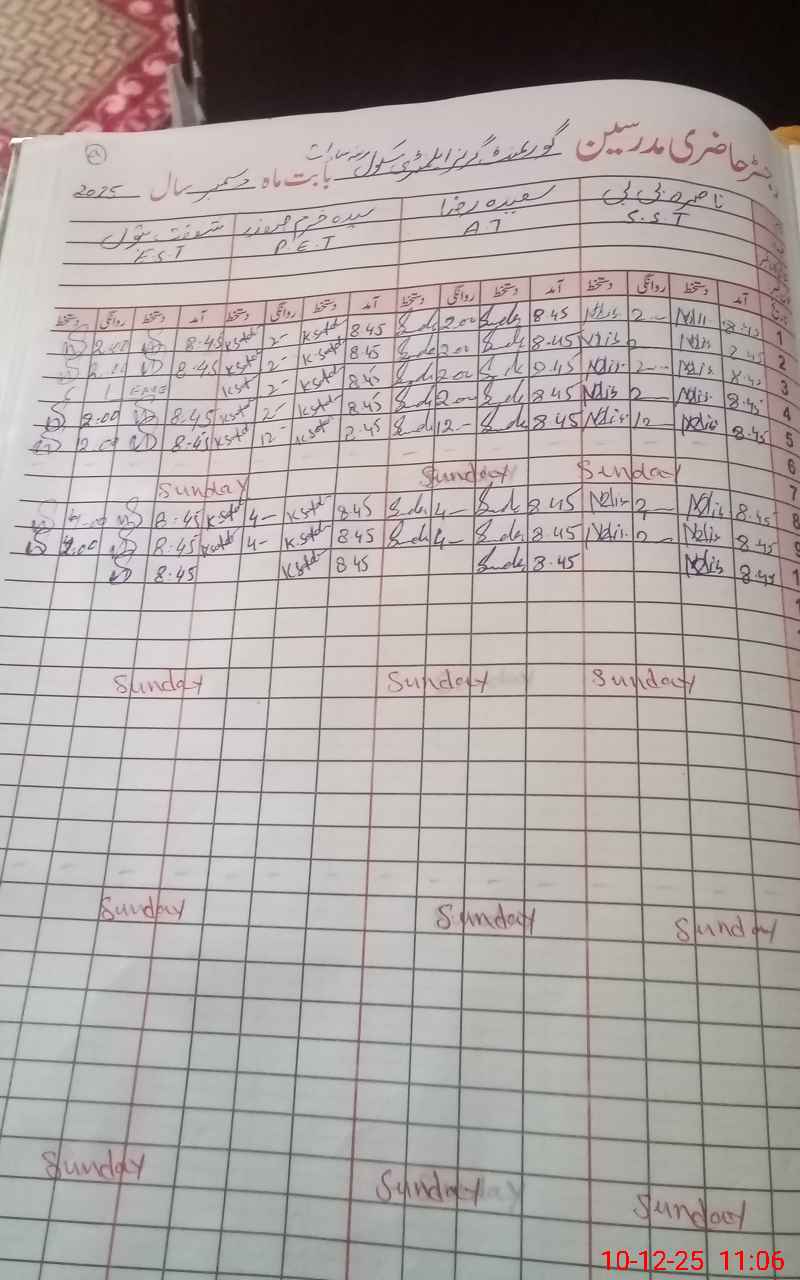 | Name: NA**** BI**** Designation: (School Headmaster's/Headmistress's) S.S.T.(GEN) Phone/Cell Number: 03**** |