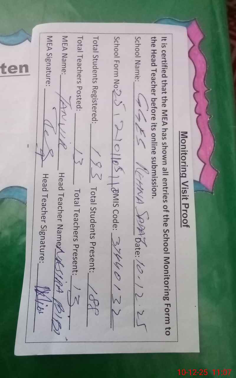 | EMIS Code: 37440132 | Name of School: GGES REHNA SADAAT | |||