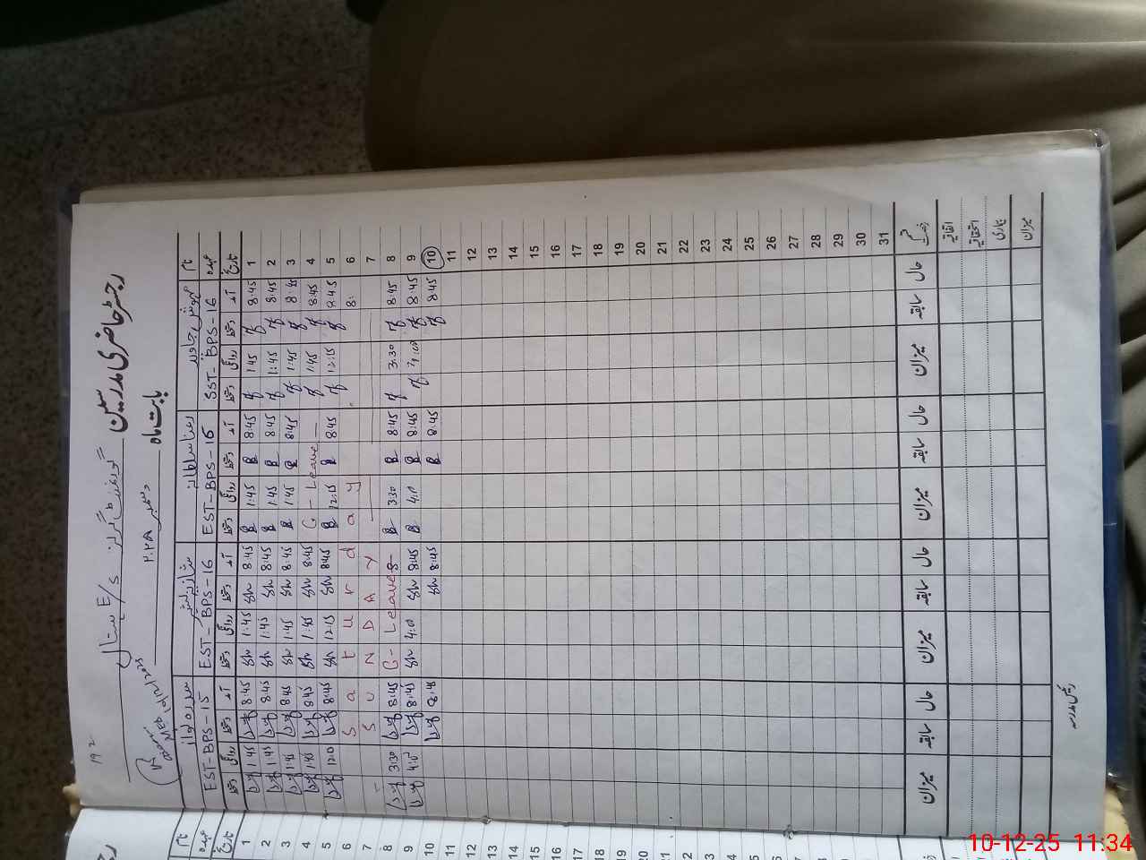 | CNIC | Full Name | Designation | R/C | Absence During Last Calender Month |