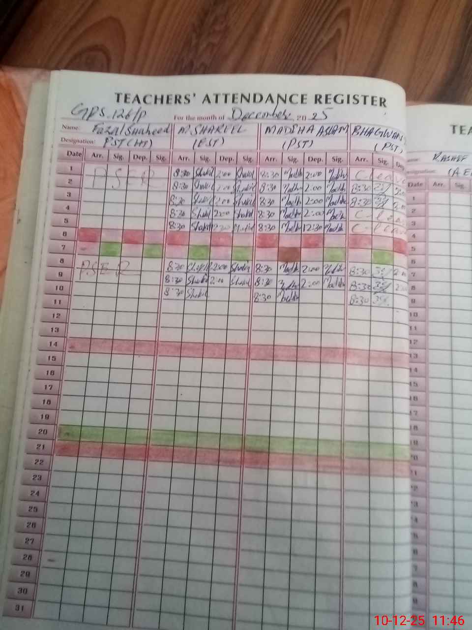 | CNIC | Full Name | Designation | R/C | Absence During Last Calender Month |