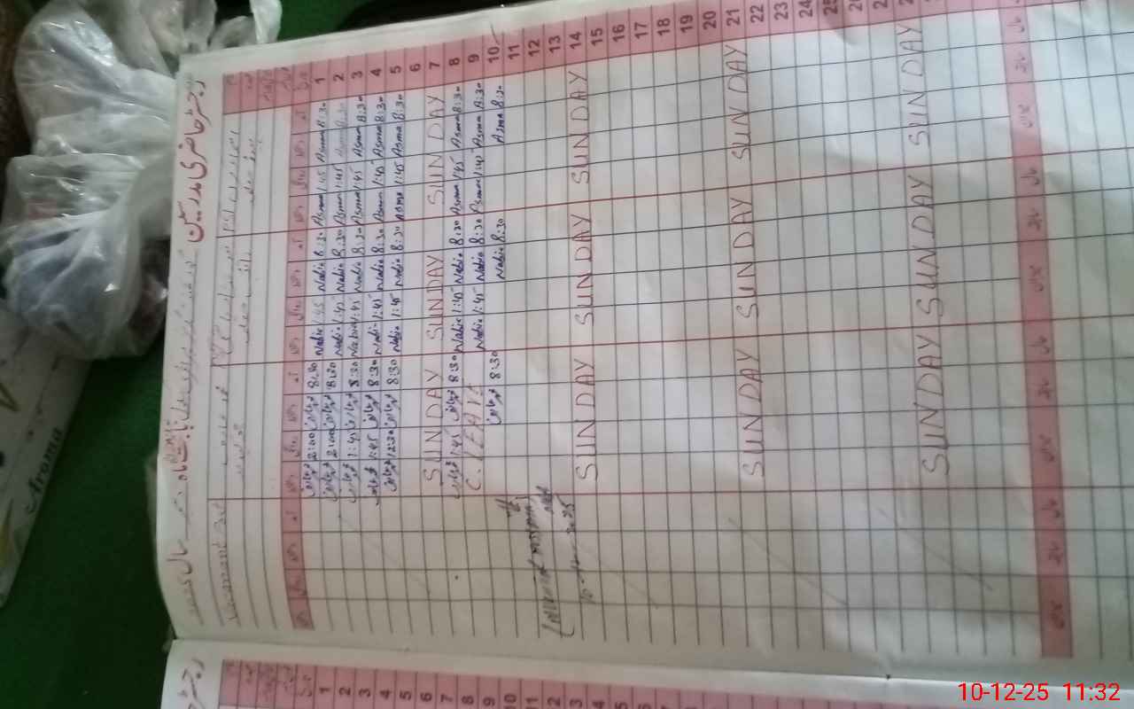 | CNIC | Full Name | Designation | R/C | Absence During Last Calender Month |