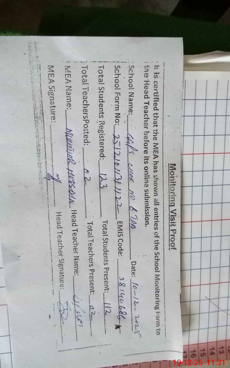 | EMIS Code: 38140686 | Name of School: GGPS CHAK NO. 6 TDA | |||