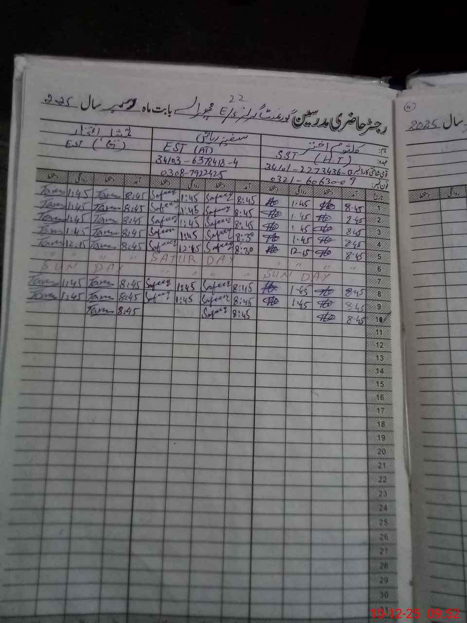 | CNIC | Full Name | Designation | R/C | Absence During Last Calender Month |