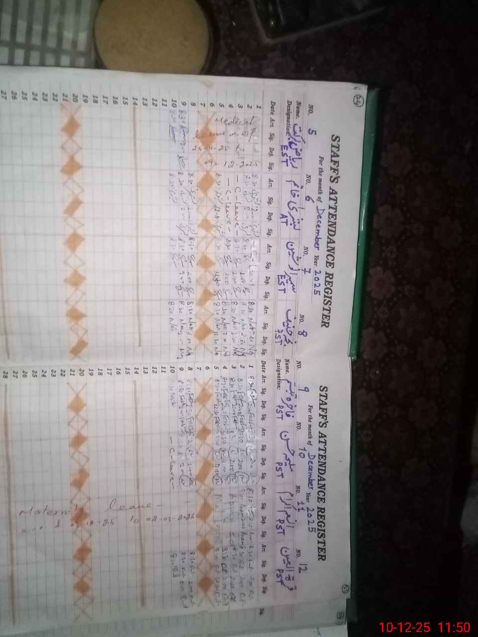 | 35**** | An**** Ik**** | PST Science/Maths | Regular | 0 | 0 | 0 | 0 | 0 | 0 | 0 | 0 | 0 | Maternity |