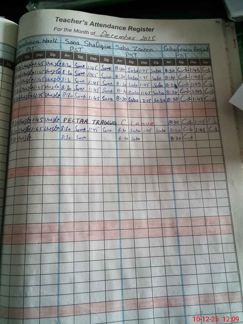 | CNIC | Full Name | Designation | R/C | Absence During Last Calender Month |