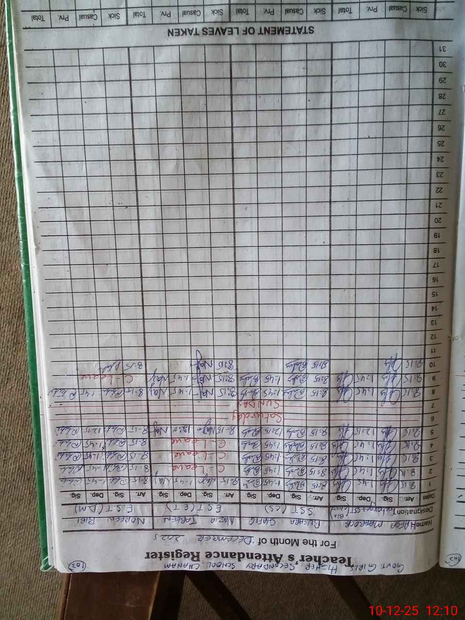 | CNIC | Full Name | Designation | R/C | Absence During Last Calender Month |
