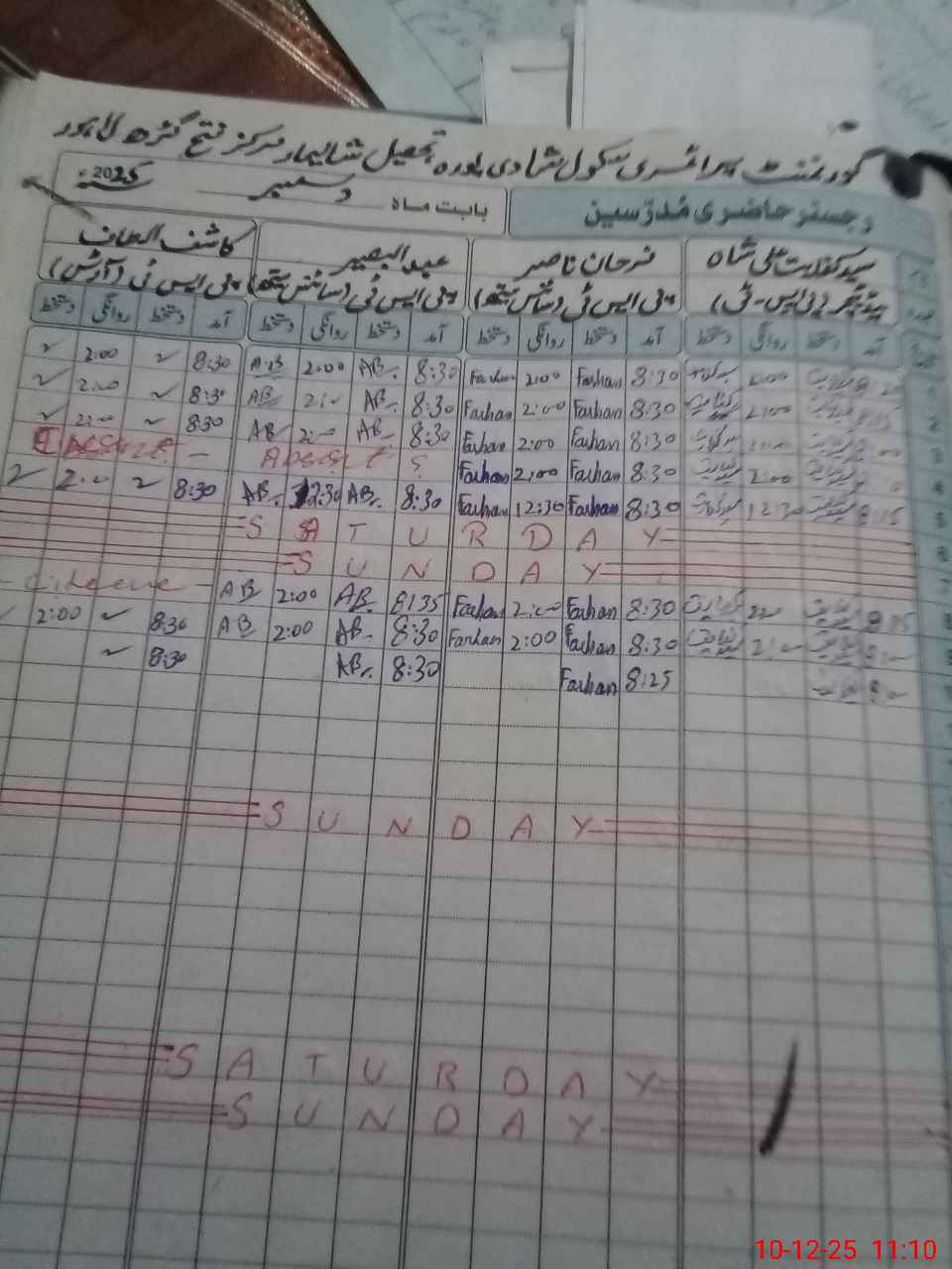| CNIC | Full Name | Designation | R/C | Absence During Last Calender Month |