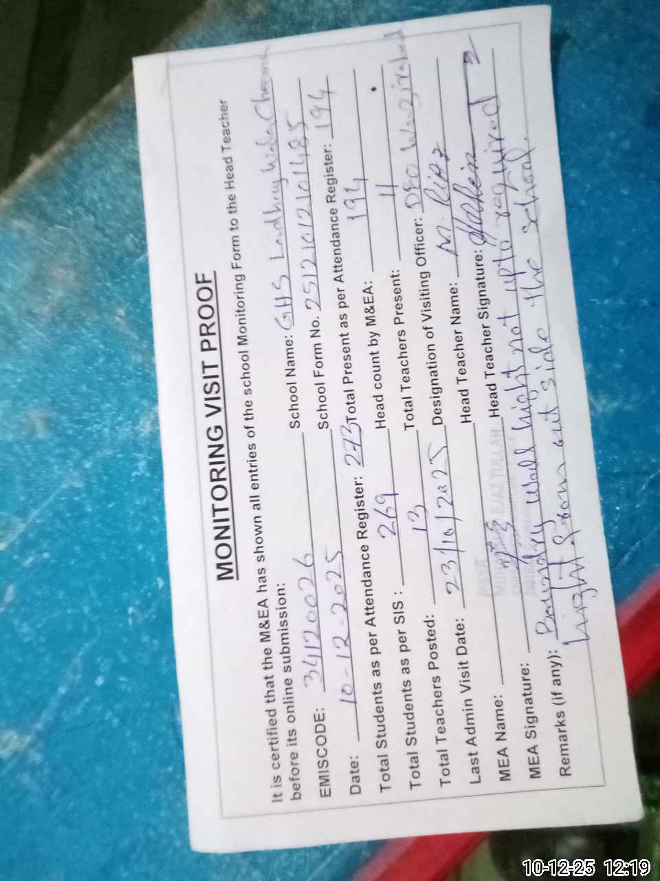 | EMIS Code: 34120026 | Name of School: GHS LADHAY WALA CHEEMA | |||