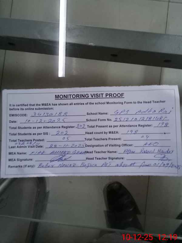 | EMIS Code: 34130188 | Name of School: GPS ADHO RAI | |||