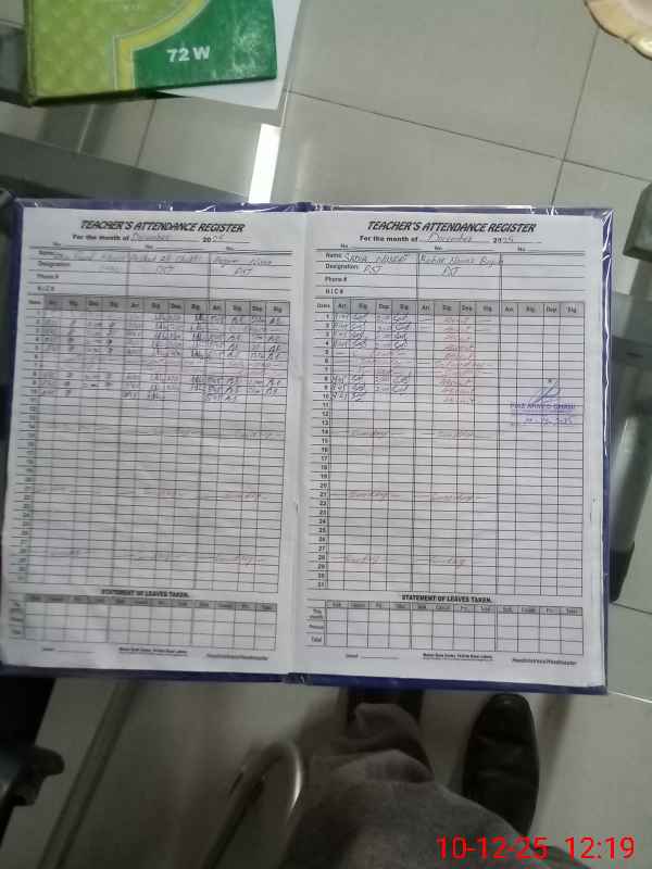 | Remarks (Use Separate Page if Required): Attendance of teaching staff on SIS Software is not updated and students attendance on SIS Software is updated Babar Nawaz Bajwa PST absent from his duty w e f 01 September 20025 Data as per provided by School Staff and found during physical visit | |||||