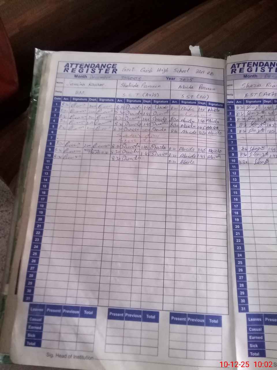 | 33**** | Ta**** Mu**** | EST Science | Regular | 0 | 0 | 0 | 0 | 0 | 0 | 0 | 0 | 0 | Absent (Un-Authorized) |
