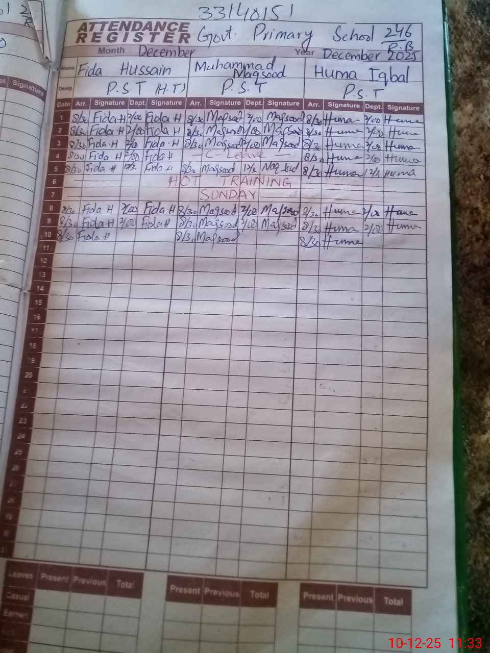 | Name: FI**** HU**** Designation: (School Headmaster's/Headmistress's) PST Phone/Cell Number: 03**** |