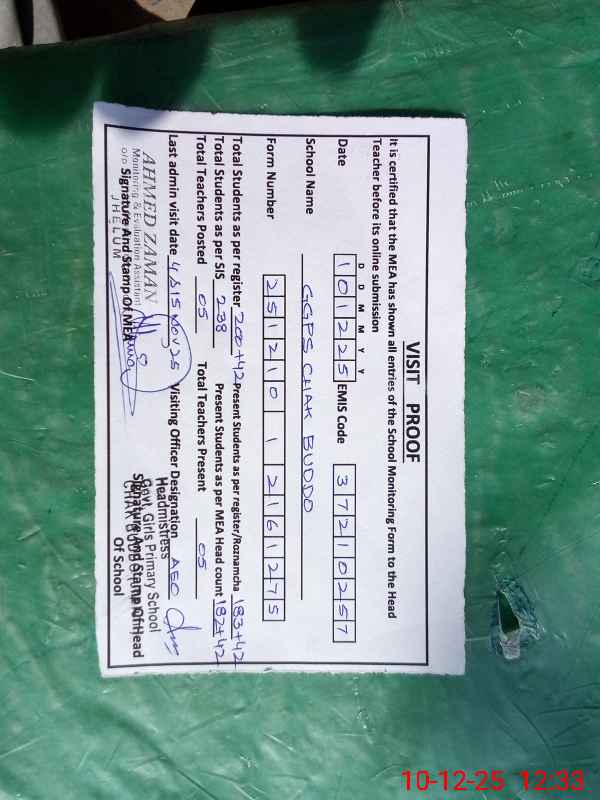 | EMIS Code: 37210275 | Name of School: GGPS CHAK BUDDO | |||