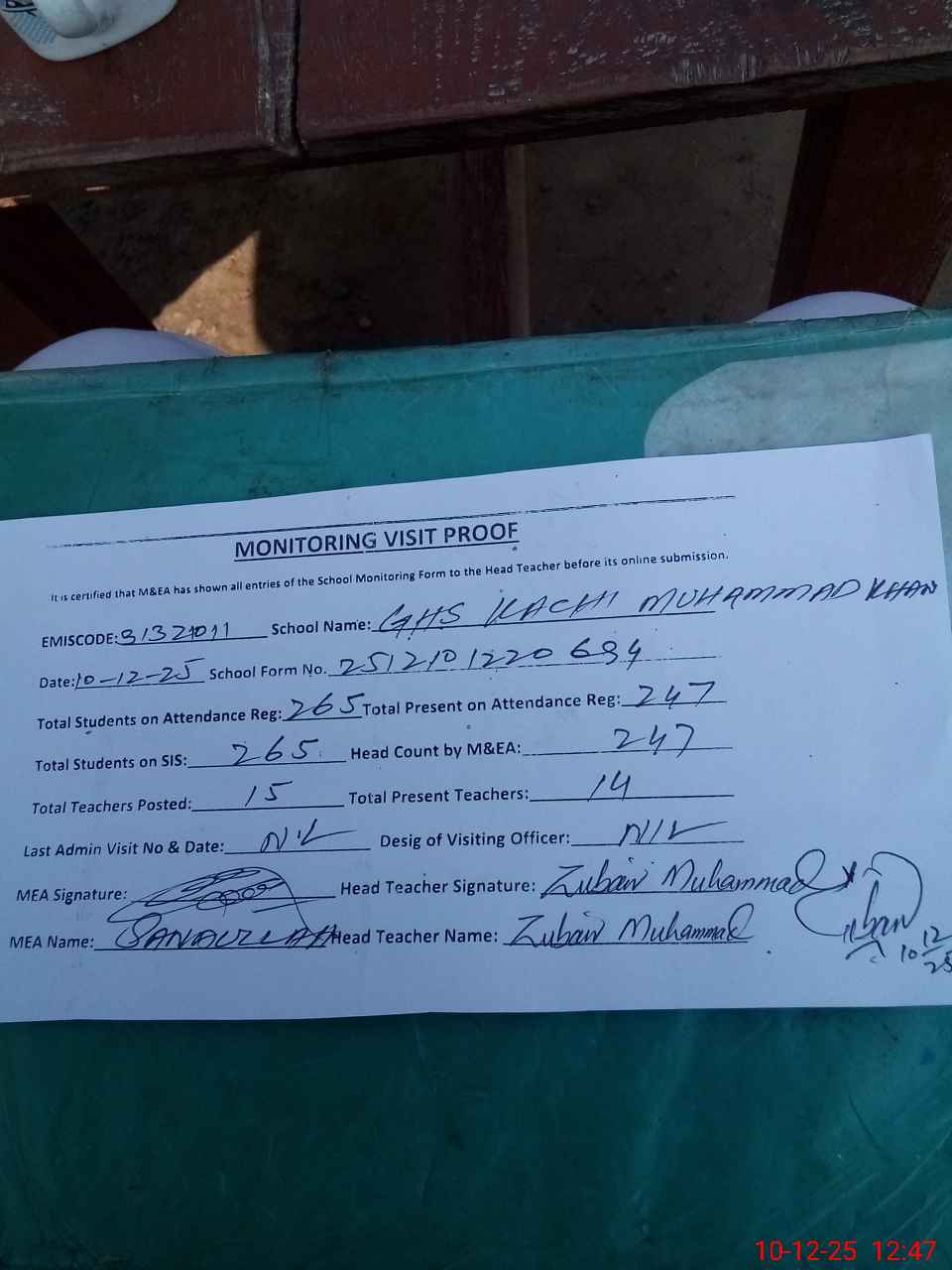 | EMIS Code: 31321011 | Name of School: GHS KACHI MUHAMMAD KHAN | |||