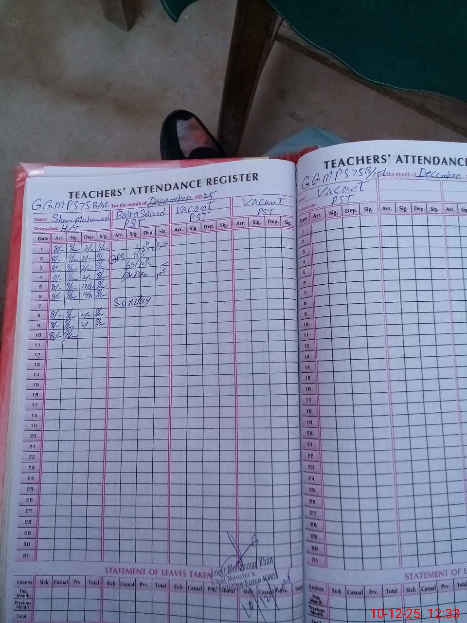 | Name: Sh**** Mu**** Designation: (School Headmaster's/Headmistress's) PST Phone/Cell Number: 03**** |
