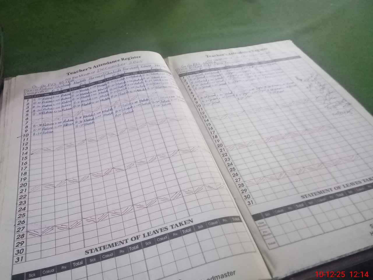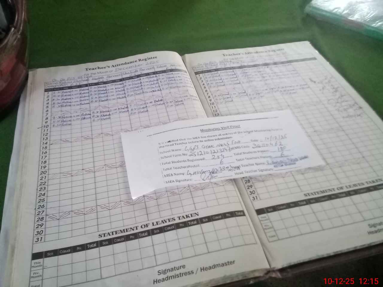 | Remarks (Use Separate Page if Required): last seen by Name kousar Naheed Designation DDEO Date 09 Dec 2025 | |||||